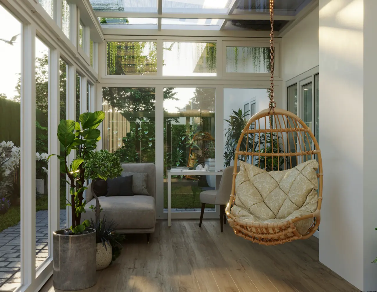 Embrace the beauty of cascading plants and pendant lights, creating a high-maintenance yet visually rewarding display. As the plants flourish, your room undergoes a dynamic transformation with ever-changing foliage and flora, adding an element of natural artistry to your balcony.