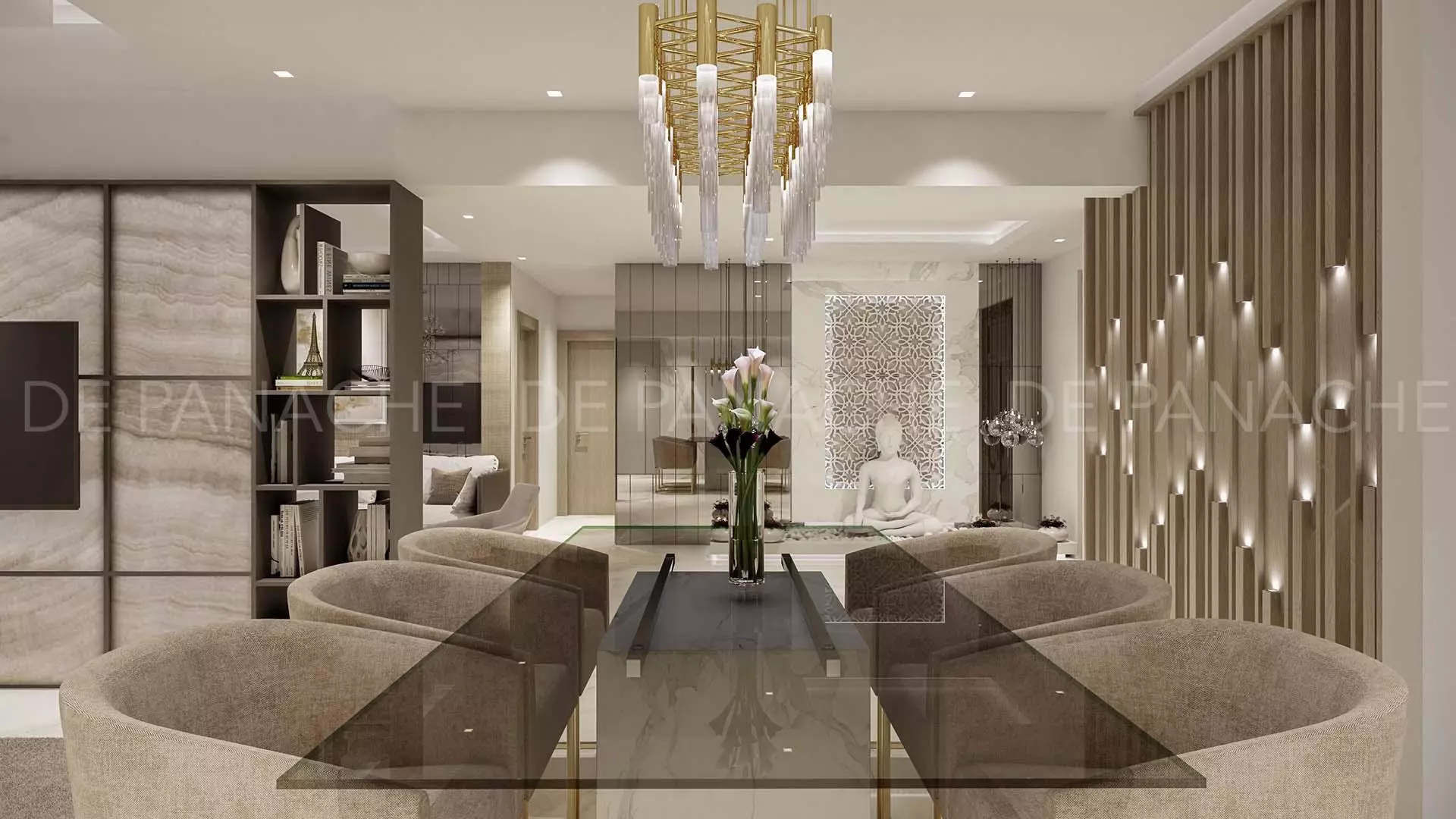 De Panache – an interior design company in Bangalore, is fully equipped by talented and professional engineers and designers who transform your mundane apartment into a sleek design. With a deep focus on outstanding craftsmanship, inventiveness, and capacity to keep commitments on time, the team designs outstanding design and decor solutions for study rooms, home offices, dining rooms, bedrooms, and so on. We are one of the exceptional residential interior designer businesses in Bangalore that can be entrusted to provide outstanding home interiors.
